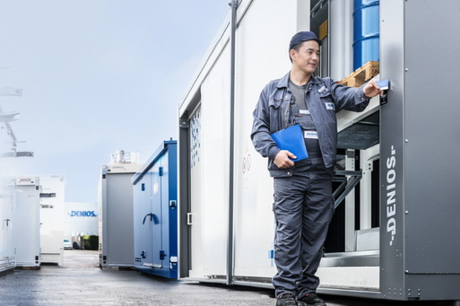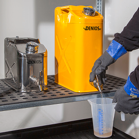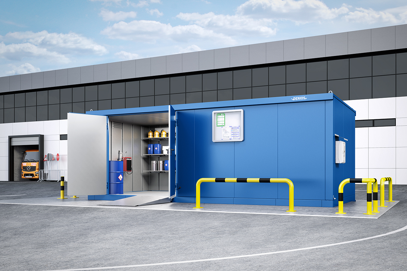 DENIOS 危化品存储站用于存放较小的容器和数量较少的圆...