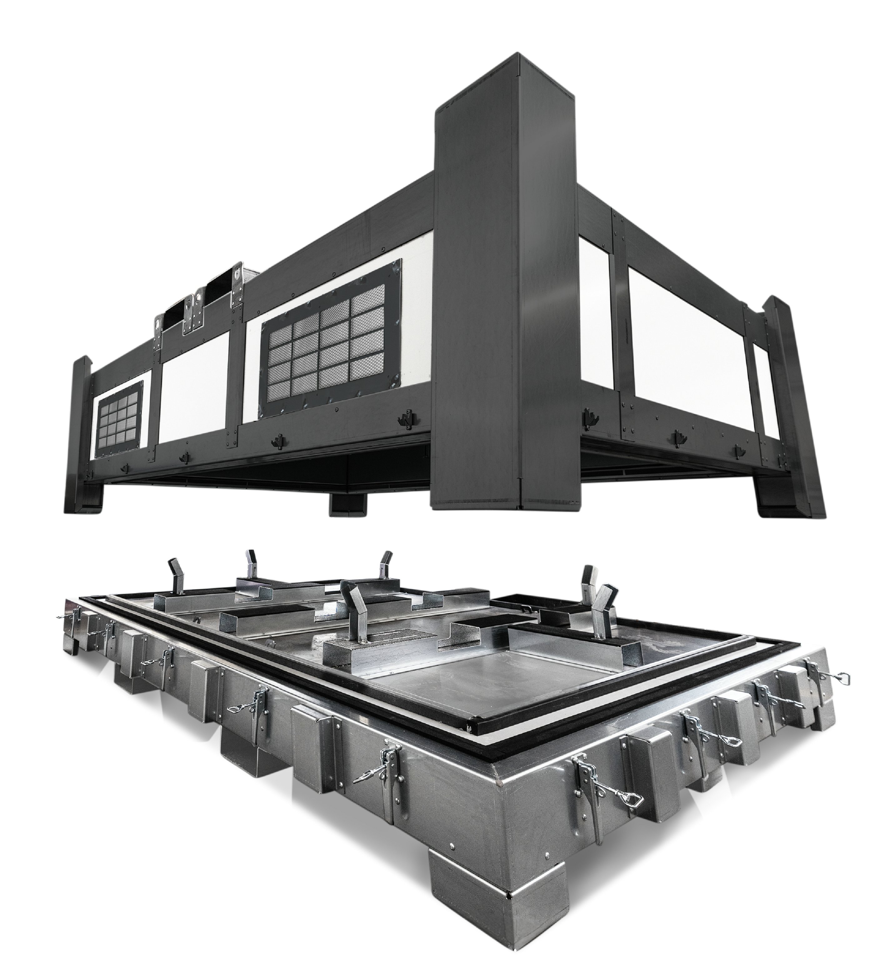 箱底四面均设置叉车孔,底部高度 100 毫米,便于箱体搬运