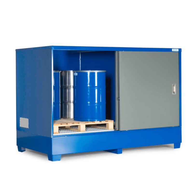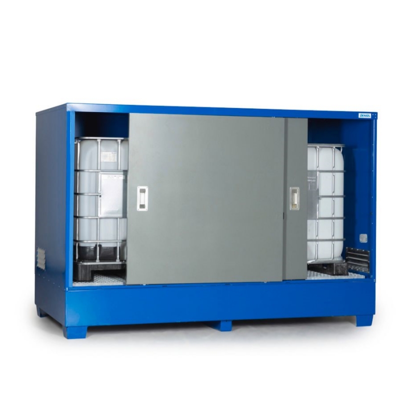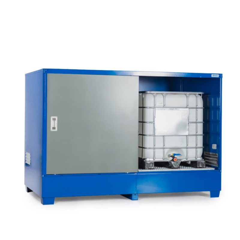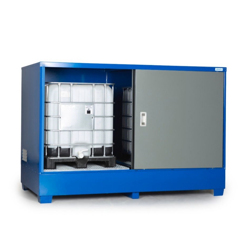 带门,可将 2 个1000 升的 IBC吨桶 或 8 个 200 升的桶直接放在网格上或化学品托盘上