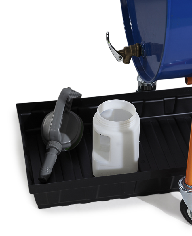 - 宽大的镀锌台面,用于使用 Secu Comfort 手推车安全地放下圆桶