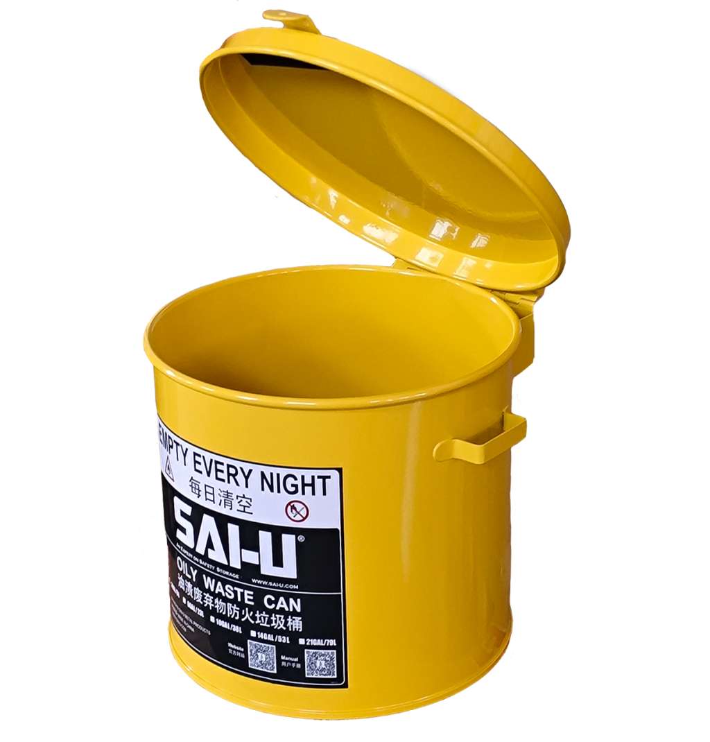 - 独特的桶身及桶底底座设计,有效降低火灾的可能性