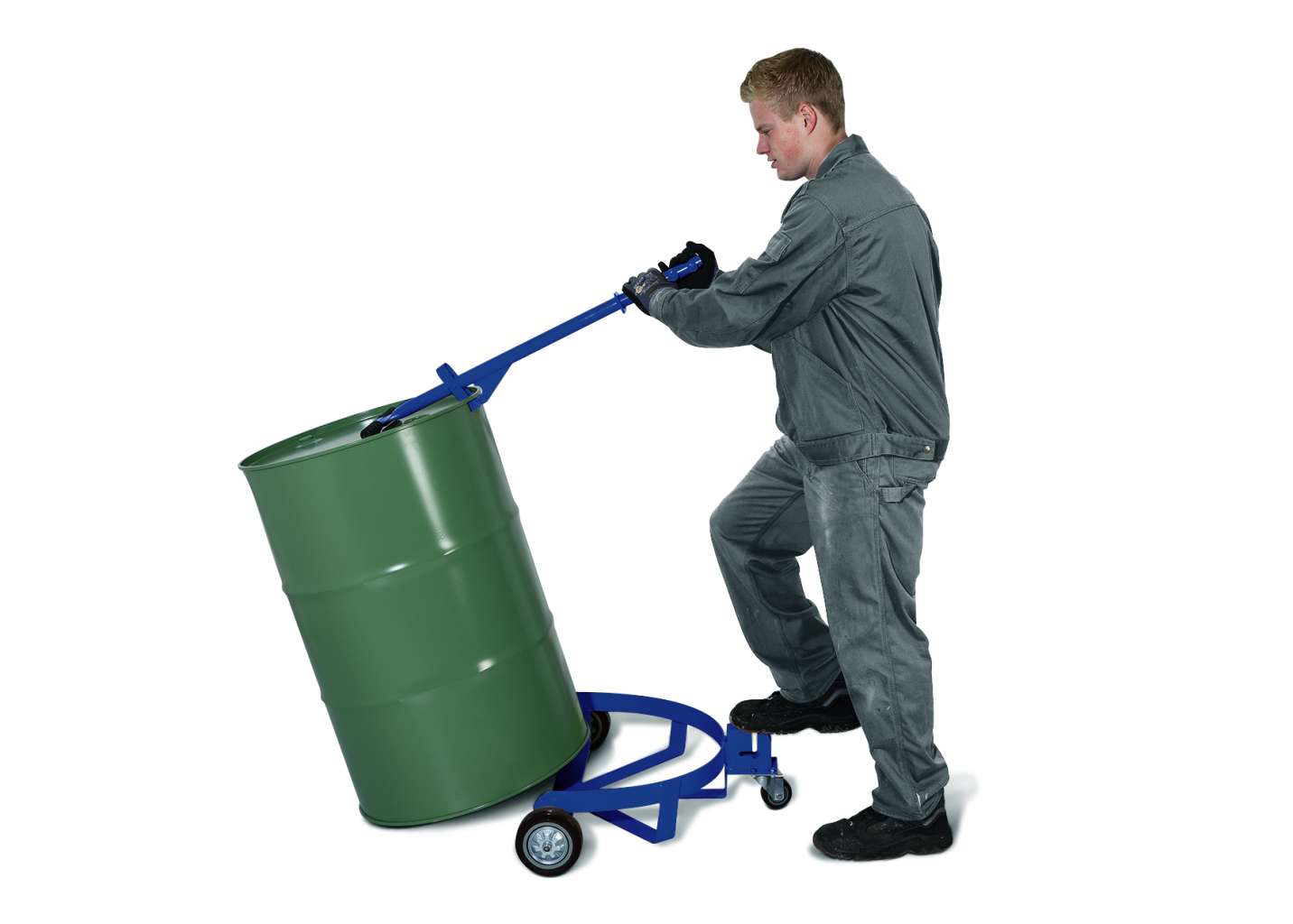 - 手柄和杠杆相结合,可以安全地倾斜圆桶,并方便运输