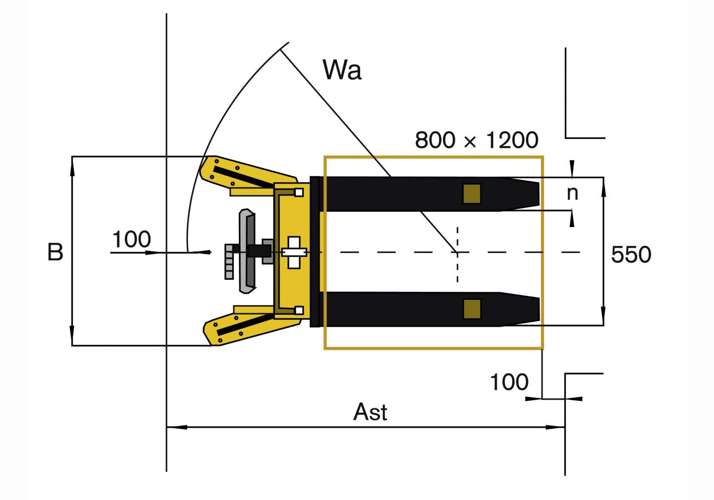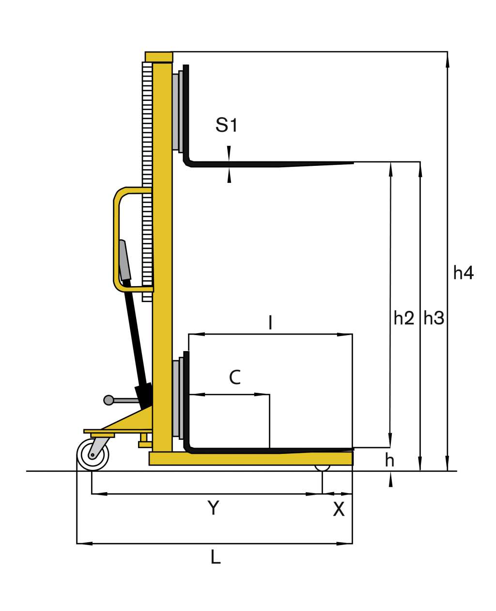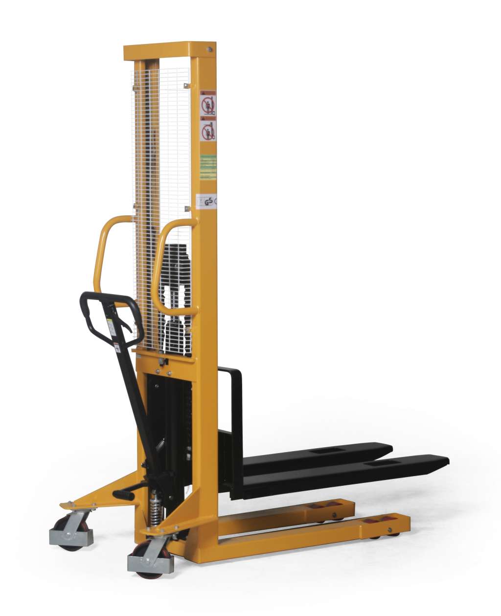 HD 10型手动堆垛机,带安全网、护脚板和刹车,载重1000千克,货叉宽度160毫米