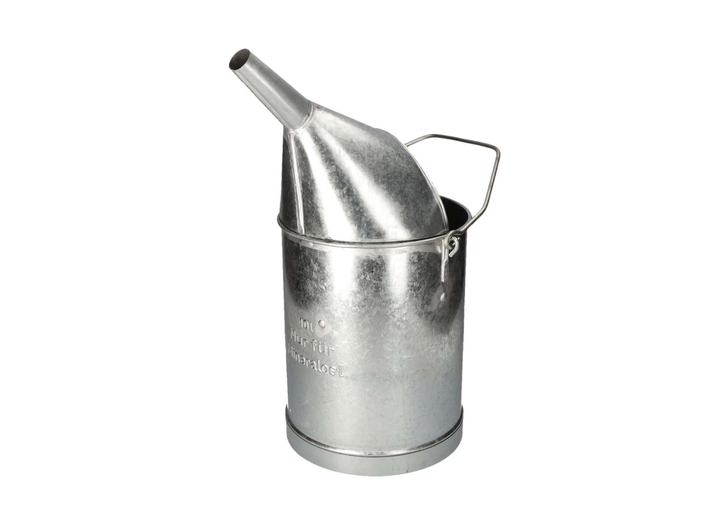 - 带有漏斗状喷嘴、提手和支撑手柄,内部有黄铜条测量刻度