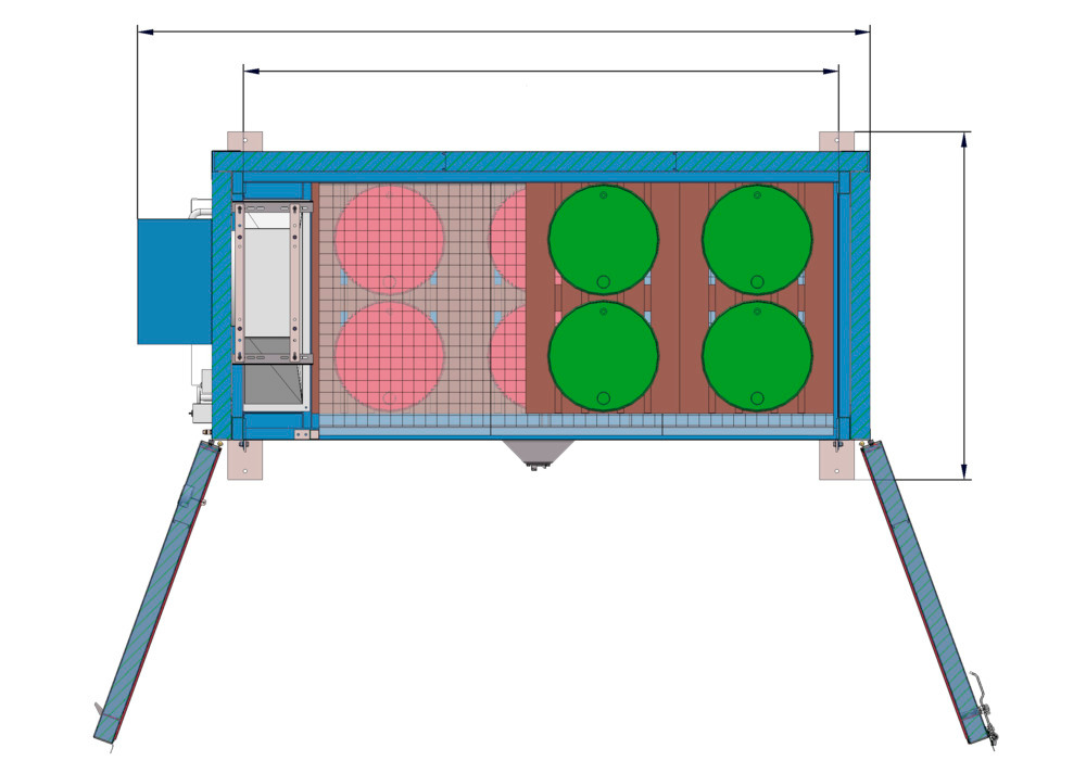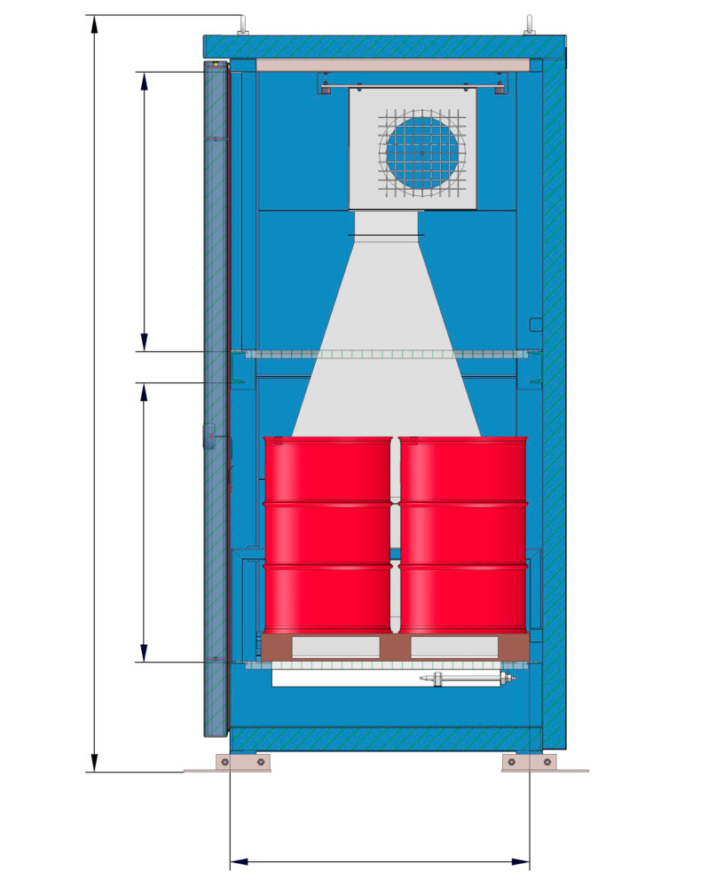 气流循环设计:热风由箱体中部(技术单元)产生,分别沿前后方向在底部吹送至容器周围,并在顶部回流至加热器,形成高效热循环。