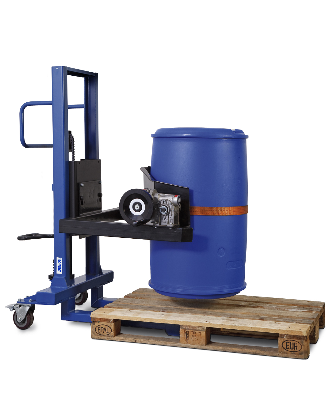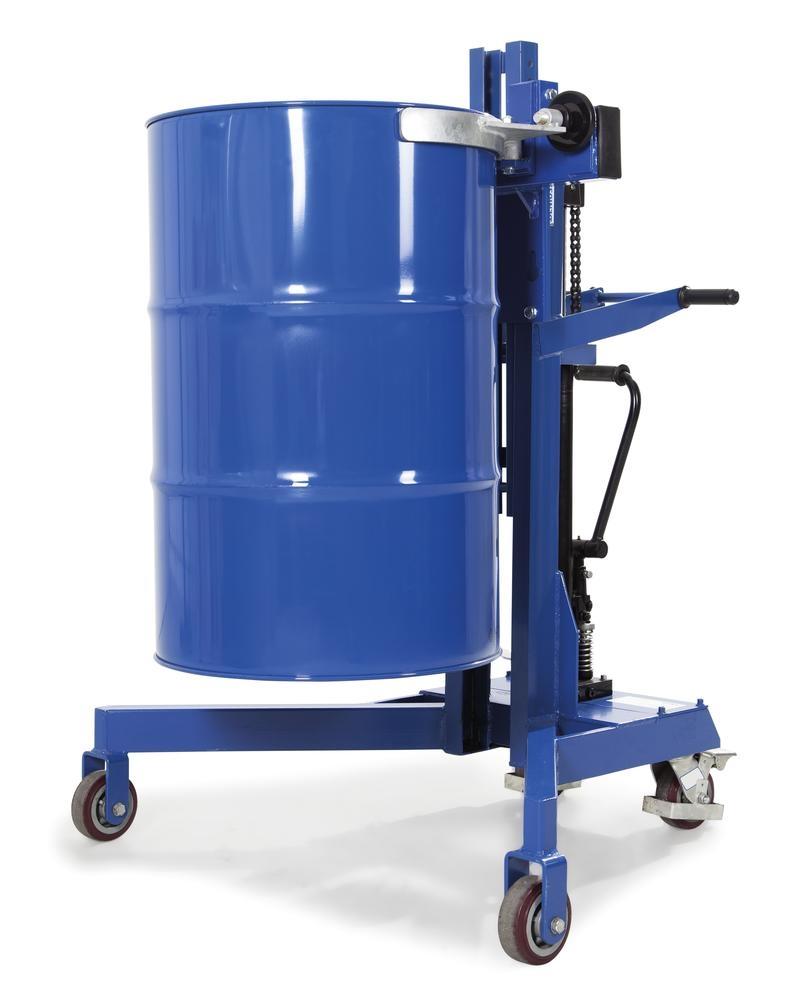 DENIOS钢制圆桶搬运提升翻料车:专业级的油桶搬运解决方案
